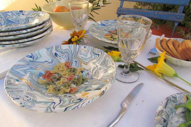 Couleurs du ciel de Provence-Inspiration-Provence- Dressez une table dans les règles de l'art grâce à ces assiettes en faïence, en terres mêlées d'Apt. Posez-les une nappe blanche, un boutis, afin de créer un effet de contraste. Pour mettre en valeur les assiettes, choisissez des verres transparents, ambres ou encore bleus. |