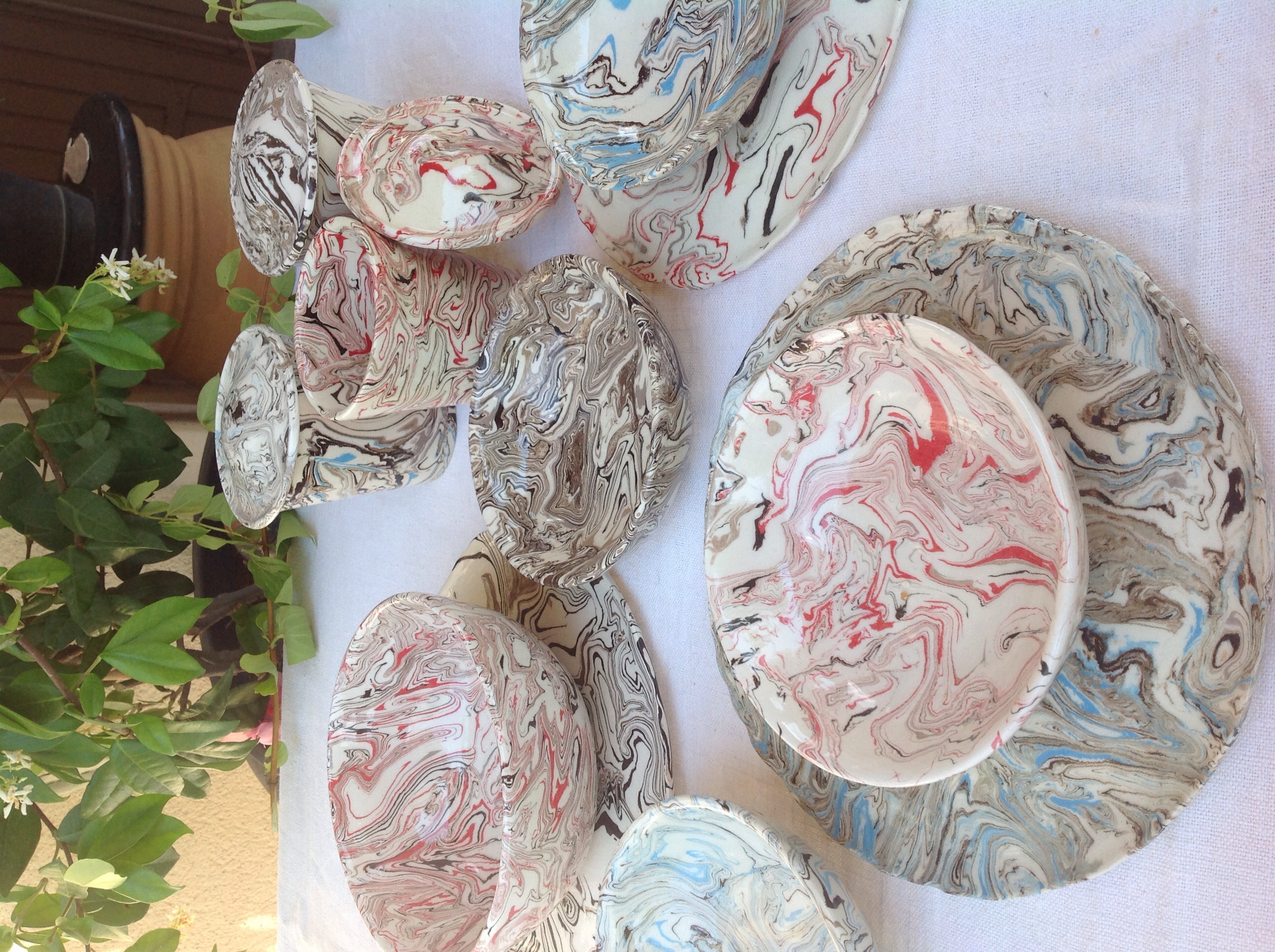 Ensemble en faïence, terres marbrées